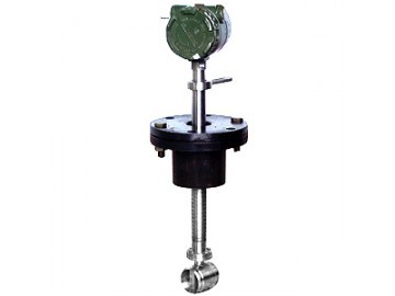 按國際標準化組織IS07145(在環形截面封閉管道中的流體流量測定—在截面一點的速度測量法),采用埋入壓電晶體的渦街測速探頭,插入大口徑工業管道內,將卡門旋渦頻率轉換為與流量成正比的電流或電壓脈沖信號或4~20mADC電流信號。